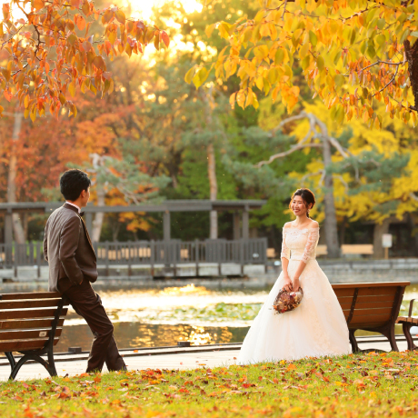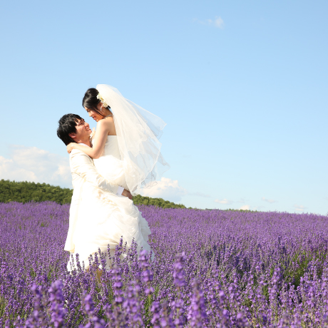 彩り豊かな花々、心地良い風、高く広がる空、そして、燦々と降り注ぐ陽光に照らされたお二人の姿。